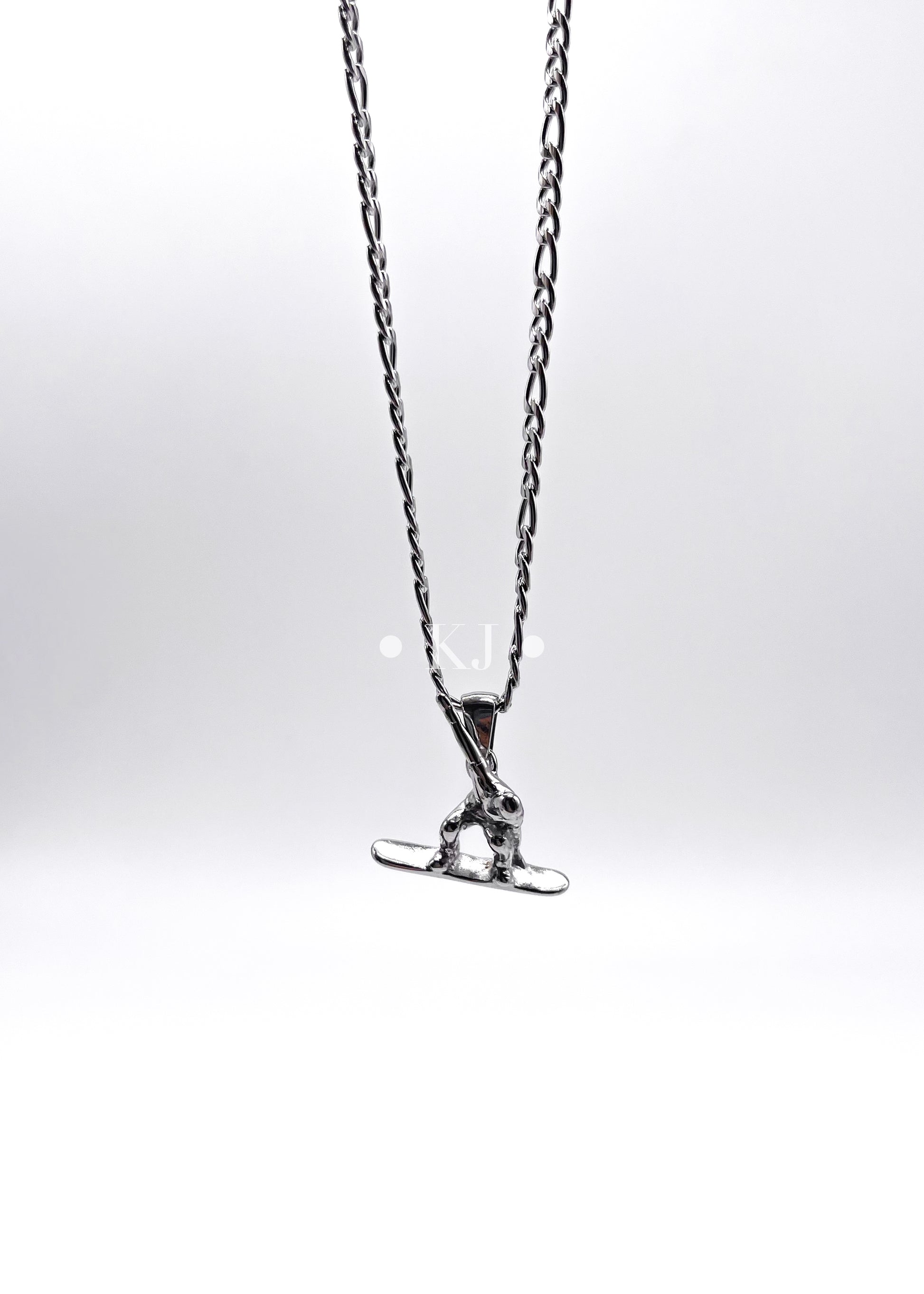 Collar de acero inoxidable con dije de snowboarding en color plateado